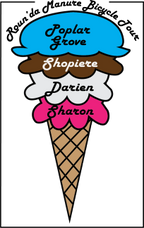 In 2005 the tour was revitalized to include a clover leaf series of four different loop routes & ice cream shop rest stops along the way. Riders could pick the routes they wanted to ride and redeem coupons for a snack or drink at the local ice cream shops. Everyone returned to Downtown Sharon, the hub in the center of the loops, for a wonderful pig roast.
